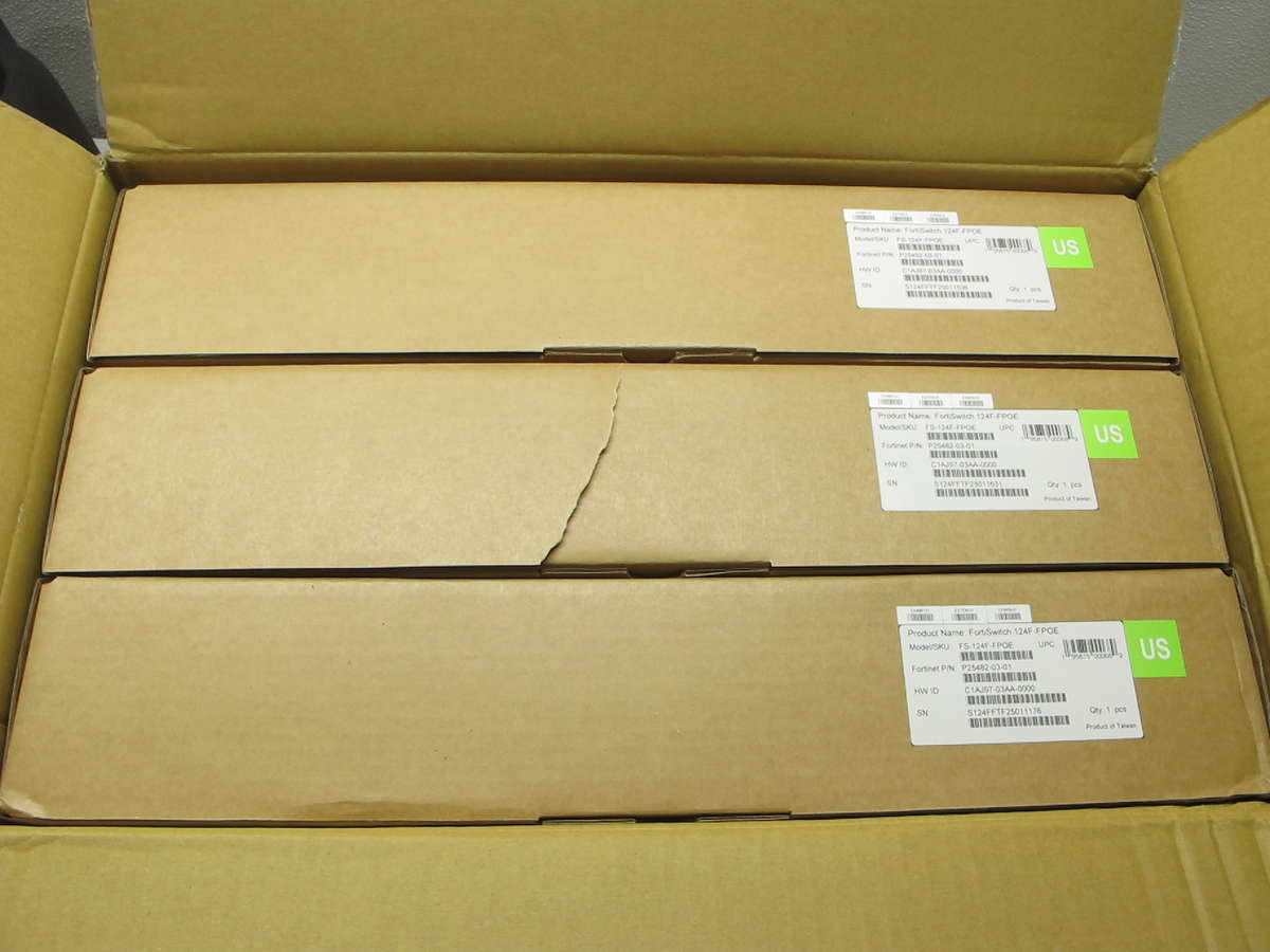 Lot of 3 - Fortinet FortiSwitch 124F-FPOE 24-Port Full PoE+ Gigabit Network Switch